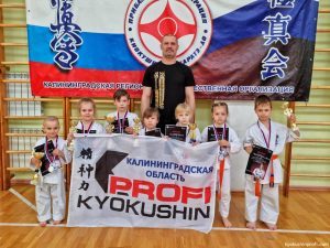 Команду Киокушин Профи Калининградской области представляли 19 бойцов с доджо г. Светлый и г. Калининграда в возрасте от 4 до 15 лет.