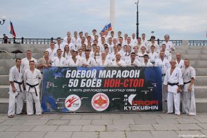 22 июля в городе Благовещенске Амурское отделение Международного союза Киокушин Профи провели боевой Марафон по кумитэ 50 боев нон-стоп, посвященный 100-летнему юбилею основателя Киокусинкай каратэ Масутацу Оямы.