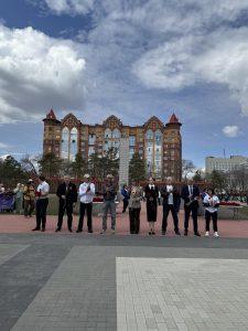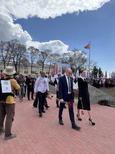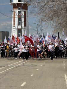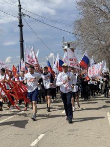 По набережные города Благовещенска до Площади Победы прошёл марафон, в котором приняли участие сотни спортсменов. Возглавляла колонну группа с Знаменем Победы и флагами знаменательных битв Великой Отечественной войны, ставшая символом памяти, силы и непоколебимости духа.
