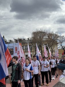 Знамя Победы нёс ученик Международного союза «Киокушин Профи» — Яковлев Илья, мастер спорта России по киокушин, победитель Первенства России и мира. Для нашей организации это большая честь — видеть своего воспитанника во главе столь значимого события.