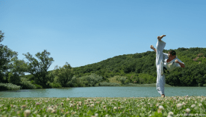 Горном принимали дан- тест и экзамен на цветные пояса.