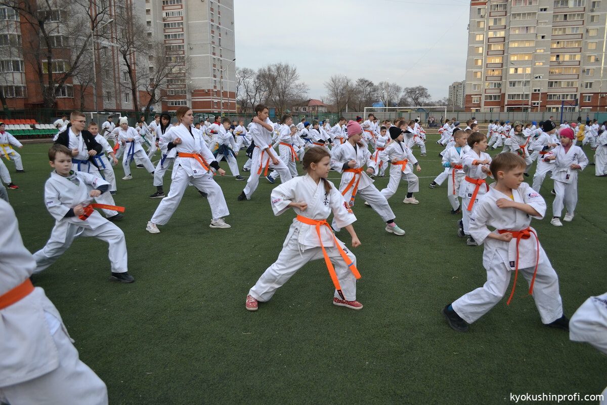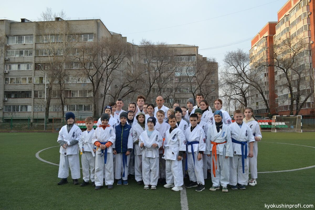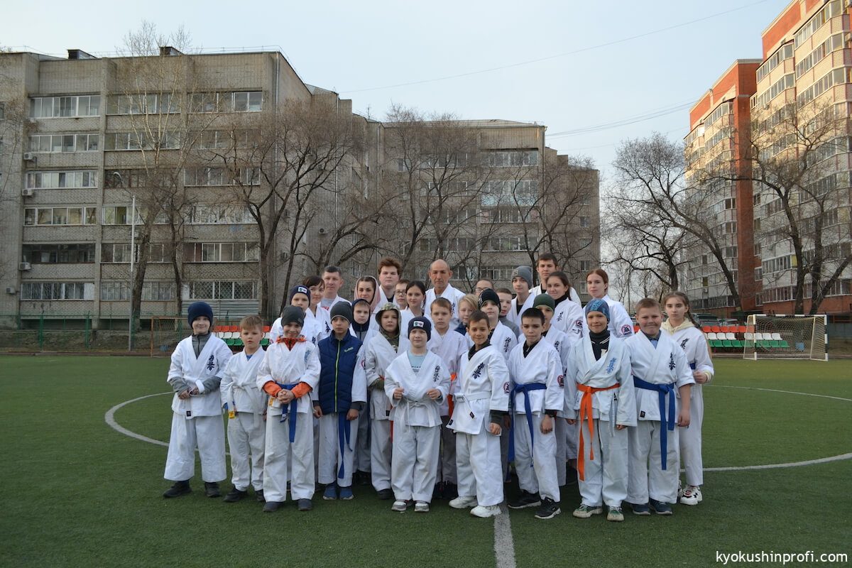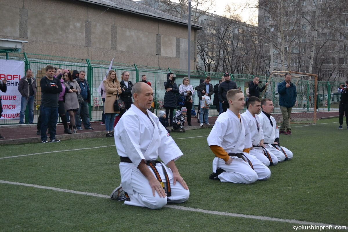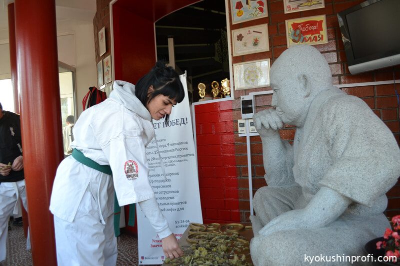 26 апреля все Киокушиновцы планеты проводят памятную тренировку в честь мастера боевых искусств, создателя боевого искусства Киокусинкай каратэ Масутацу Оямы. Спортсмены Благовещенской городской спортивной общественной организации Киокусинкай каратэ, так же почтили честь великого мастера. Каждый участник сначала совершал ритуал возле постамента Масутацу Оямы с возложением вербы, после чего все приняли участие в традиционной часовой тренировке. В одних рядах стояли самые юные адепты Киокусинкай с черными поясами, мастерами каратэ. По окончанию тренировки Шихан Анатолий Фесенко поблагодарил родителей за поддержку, и пожелал всем участникам удачи в освоении боевого искусства Киокусинкай. Ос!
