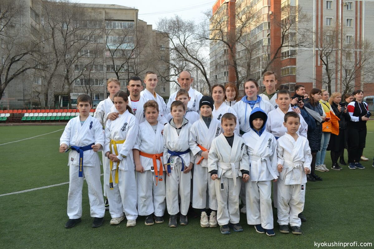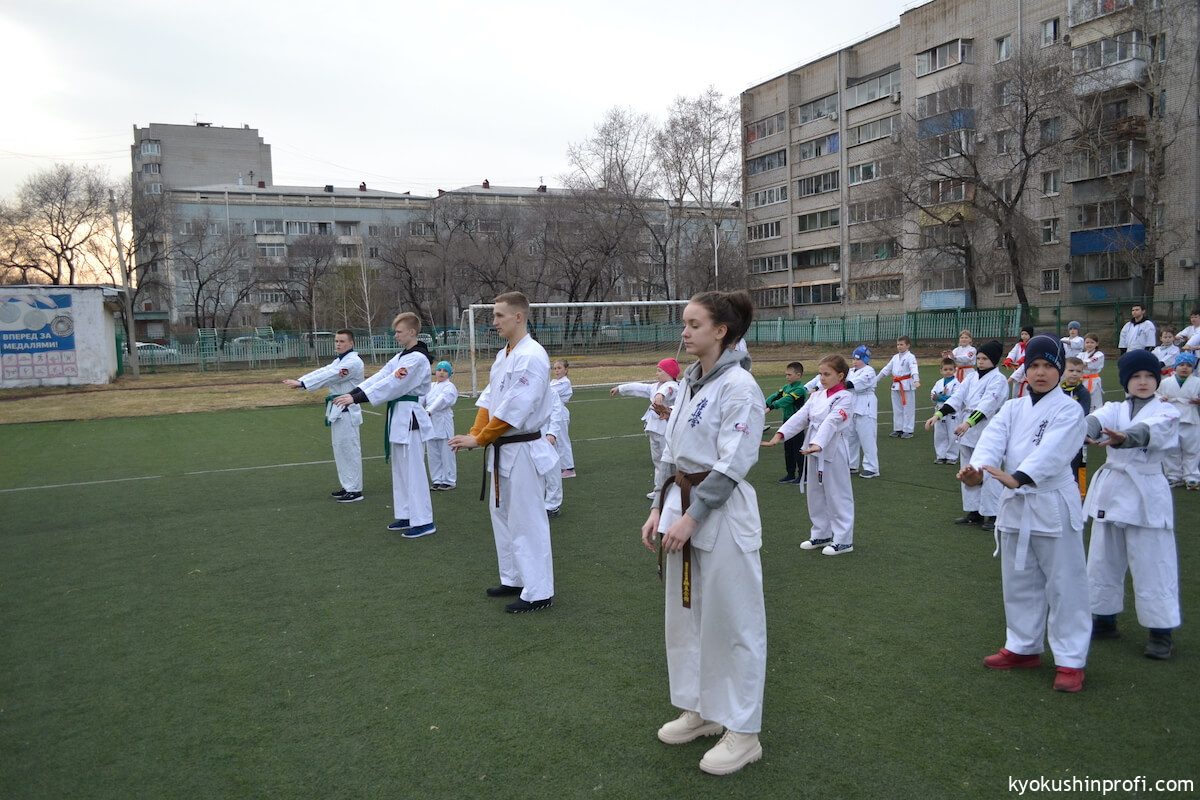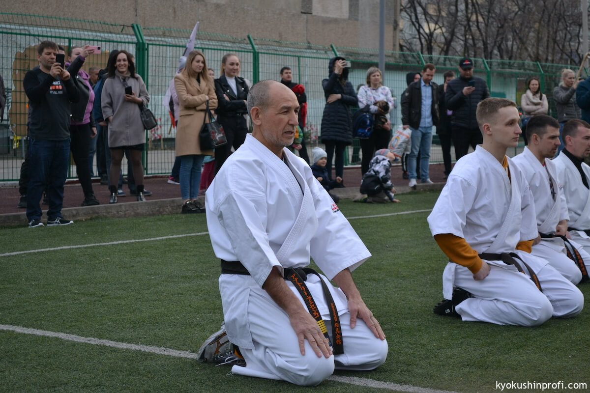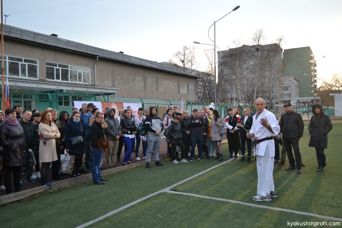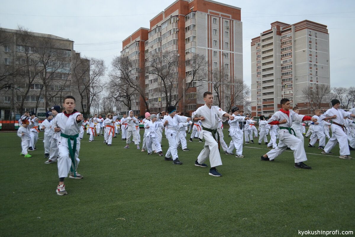 26 апреля все Киокушиновцы планеты проводят памятную тренировку в честь мастера боевых искусств, создателя боевого искусства Киокусинкай каратэ Масутацу Оямы. Спортсмены Благовещенской городской спортивной общественной организации Киокусинкай каратэ, так же почтили честь великого мастера. Каждый участник сначала совершал ритуал возле постамента Масутацу Оямы с возложением вербы, после чего все приняли участие в традиционной часовой тренировке. В одних рядах стояли самые юные адепты Киокусинкай с черными поясами, мастерами каратэ. По окончанию тренировки Шихан Анатолий Фесенко поблагодарил родителей за поддержку, и пожелал всем участникам удачи в освоении боевого искусства Киокусинкай. Ос!