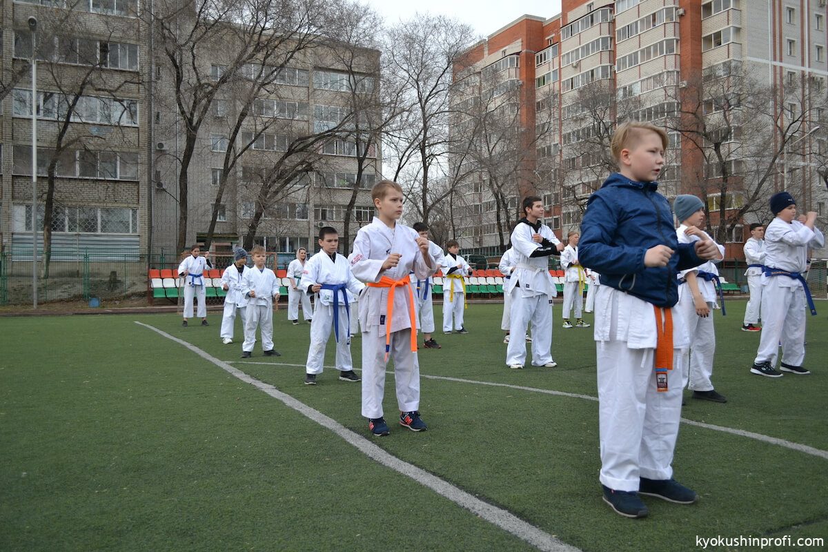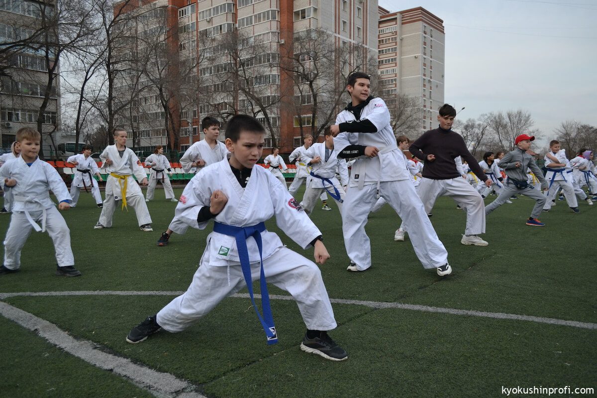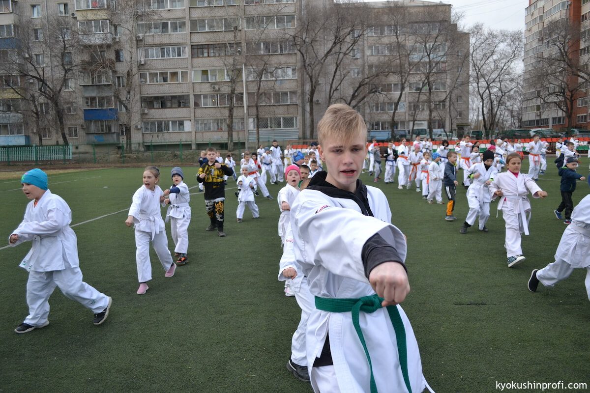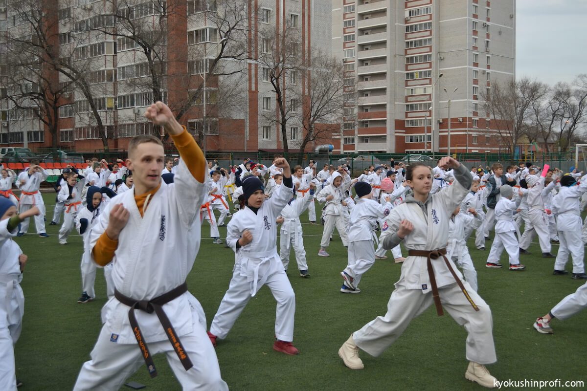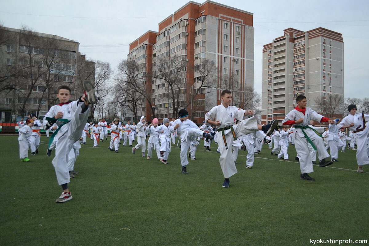 26 апреля все Киокушиновцы планеты проводят памятную тренировку в честь мастера боевых искусств, создателя боевого искусства Киокусинкай каратэ Масутацу Оямы. Спортсмены Благовещенской городской спортивной общественной организации Киокусинкай каратэ, так же почтили честь великого мастера. Каждый участник сначала совершал ритуал возле постамента Масутацу Оямы с возложением вербы, после чего все приняли участие в традиционной часовой тренировке. В одних рядах стояли самые юные адепты Киокусинкай с черными поясами, мастерами каратэ. По окончанию тренировки Шихан Анатолий Фесенко поблагодарил родителей за поддержку, и пожелал всем участникам удачи в освоении боевого искусства Киокусинкай. Ос!