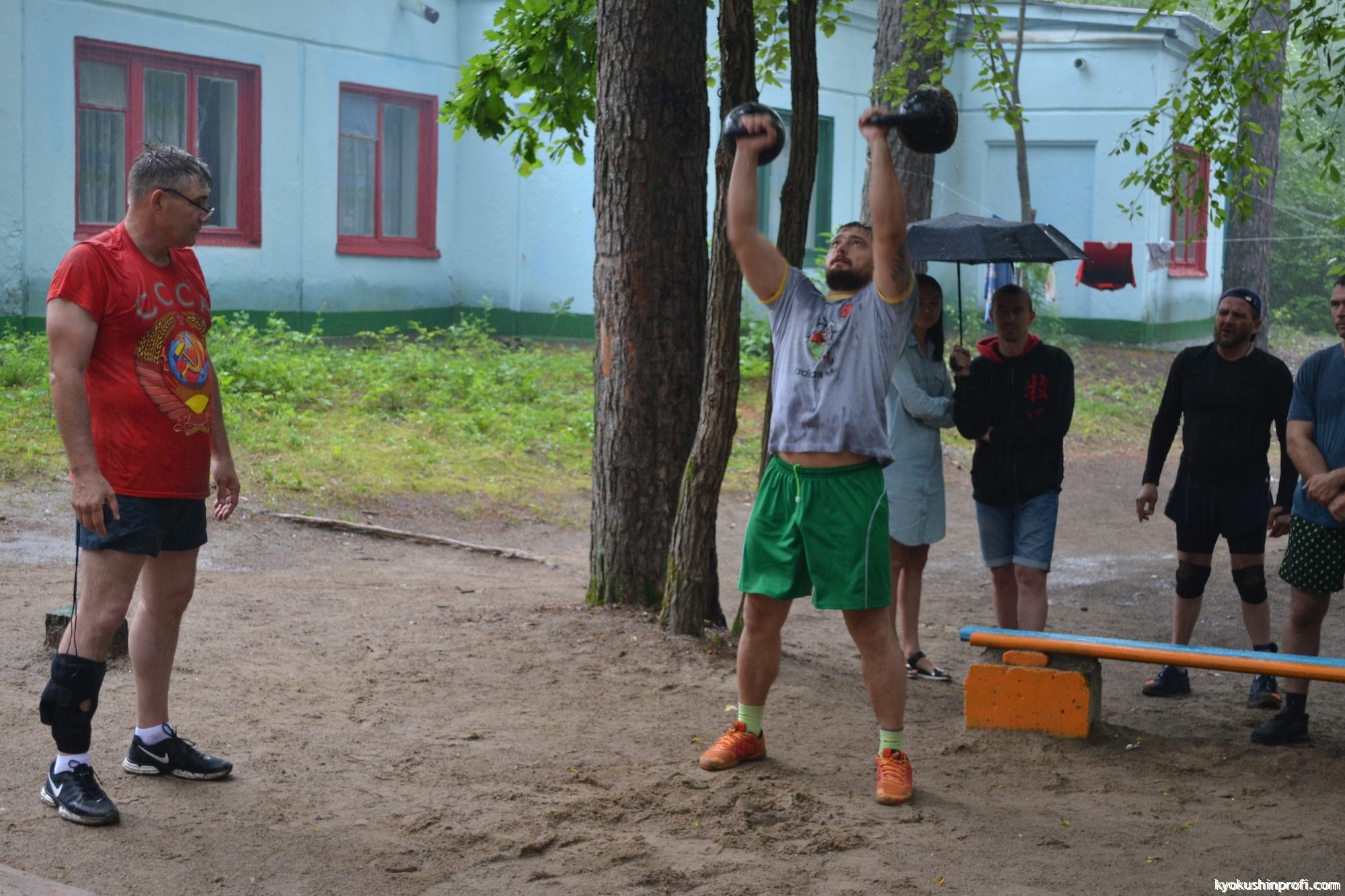 14 июля на базе спортивно оздоровительного лагеря Строитель состоялось традиционное Киокушиновское многоборье для ведущих спортсменов и тренеров-преподавателей Амурской региональной корпорации «Киокушинкай-кан». В этом году, несмотря на постоянный проливной дождь,в многоборье приняли участие спортсмены из городов и районов Амурской области. В программе жим штанги лежа с собственным весом на максимальное количество раз, полоса препятствий(кросс фит), бег на 800 метров.