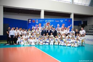 Главный судья соревнования Алымов Григорий Александрович и другие приглашенные на турнир гости — депутат Законодательного Собрания Красноярского края –Петренко Евгений Александрович, президент «Федерации Киокушин» Красноярского края на торжественной церемонии открытия пожелали спортсменкам блистательных побед и удачи в поединках!