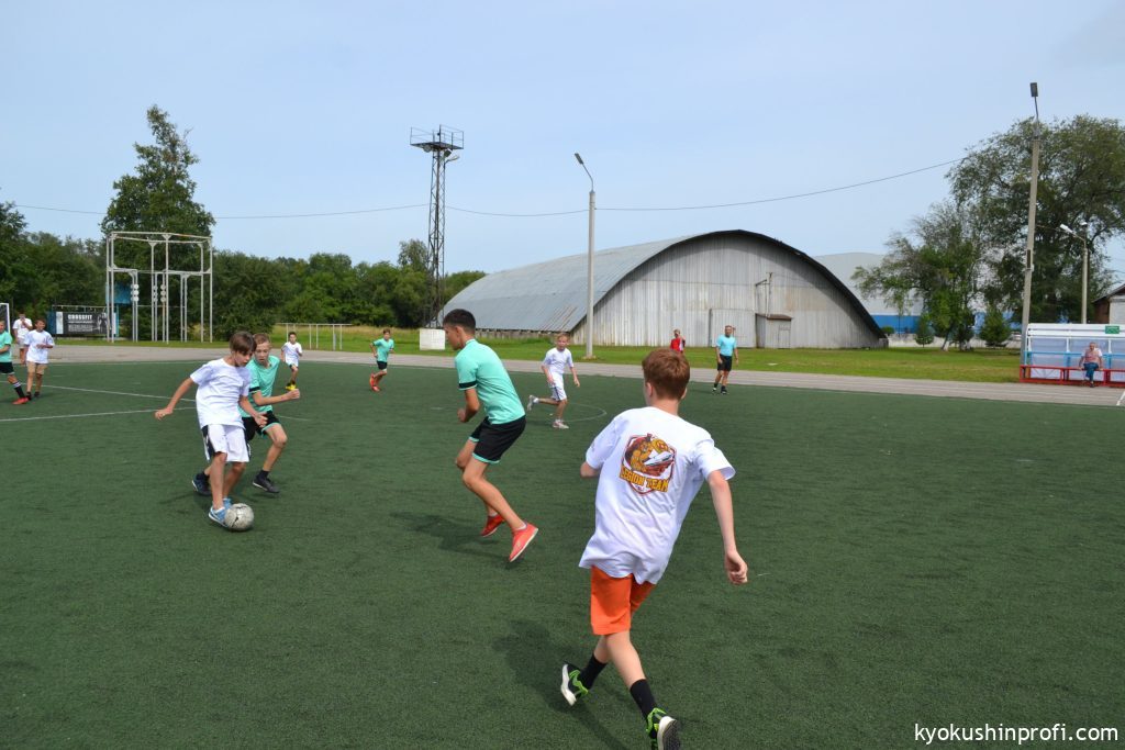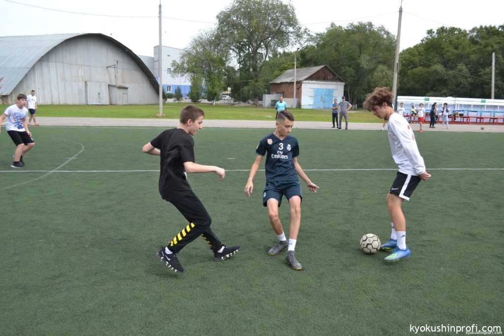 В минувшие выходные в городе Благовещенске прошли учебно-тренировочные занятия, на которых выявляли лучшую команду по мини-футболу среди дворовых команд. В этом мероприятии приняли участие спортсмены Киокушин Профи. В возрастной подгруппе 16 лет и старше, команда Благовещенской организации Киокусинкай каратэ заняла третье место. Среди группы 12-15 лет в борьбе за бронзовые медали встретились команды Киокусинкай Легион и каратэ Кидс. На этот раз лучшими стали ребята отделения Киокусинкай (общественно культурного центра) каратэ кидс. Поздравляем наших ребят с победой и желаем в следующем году стать чемпионами.