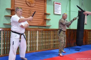 В рамках проведения УТС пригласили офицера в запасе Бронникова Дмитрия Владимировича, который провел занятие по технике ведения ножевого боя.