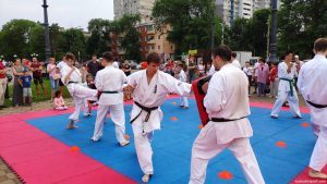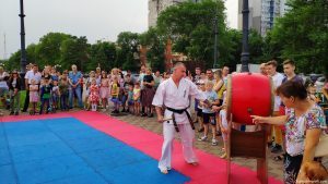 20 июня на набережной реки Амур Киокушиновцы под руководством семпая Евгения Кацан организовали спортивные площадки и мастер классы по Киокусинкай каратэ. Каждый желающий мог проверить свои силы в тамэшивари (разбивание твердых предметов различными частями тела). Все участники были награждены сертификатами на месяц бесплатных занятий в группах Киокусинкай города Благовещенска. Фееричным завершением праздника были показательные выступления юных адептов и черных поясов мастеров Киокушина.