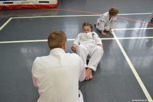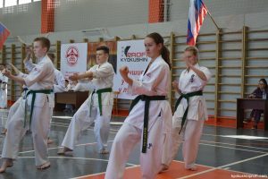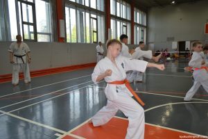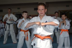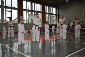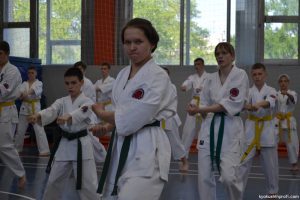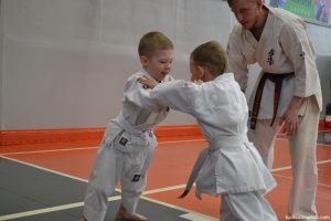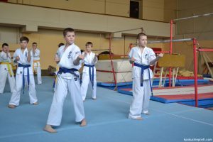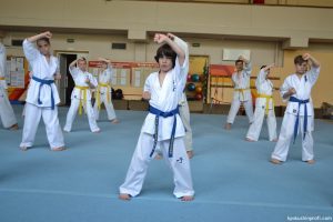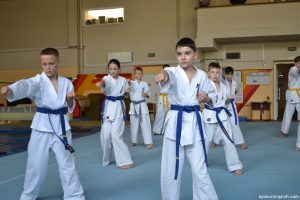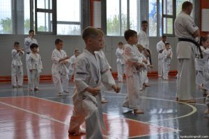 В рамках аттестационного экзамена, был проведен тест для маленьких каратистов на белые пояса (оранжевой, синей, желтой) полоской и получение будо паспорта «Юный Каратист», который проходил впервые, по новой программе сдачи нормативов для детей младшего возраста 4-5, 6-7, 8-9 лет.